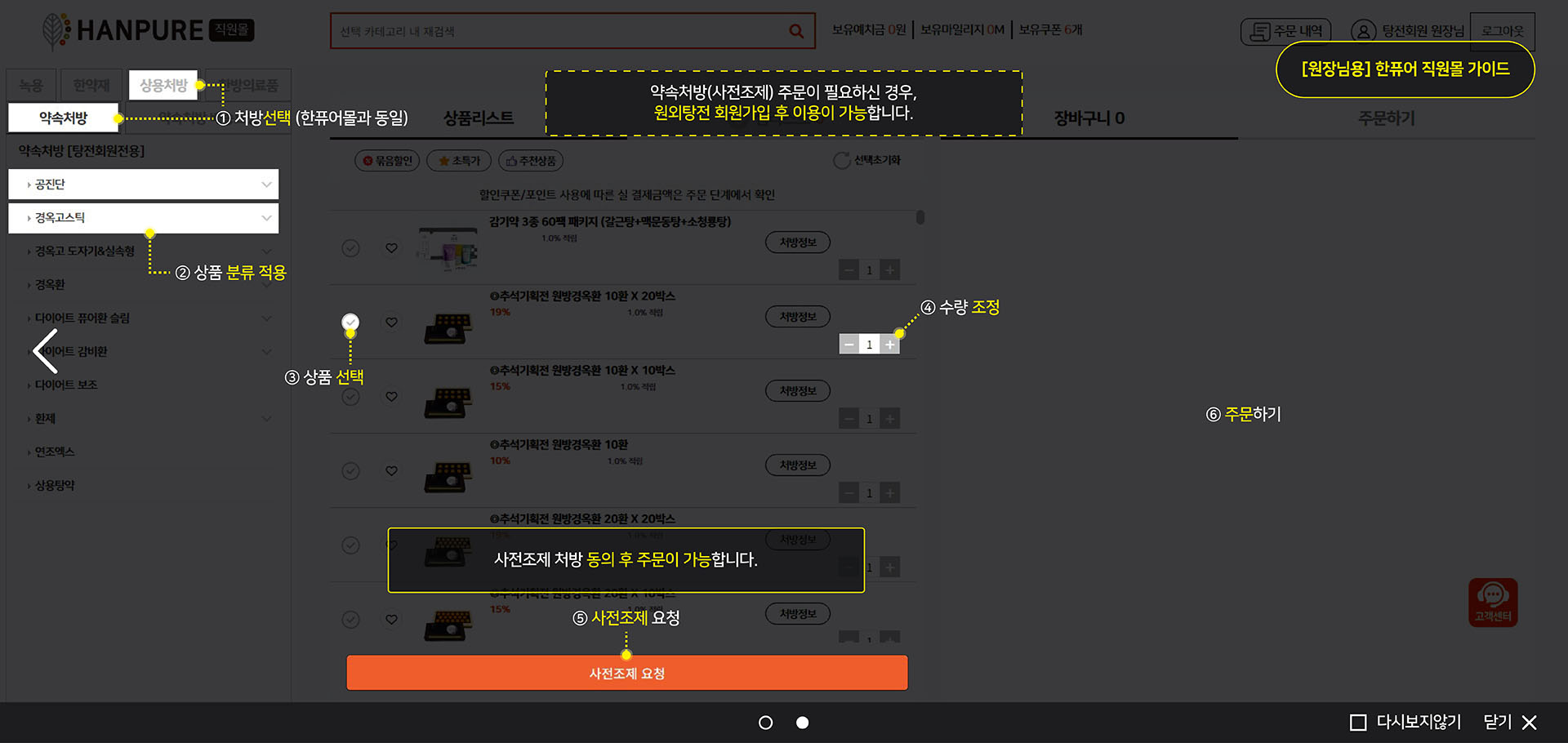 탕전회원이신 원장님만 약속처방 주문이 가능합니다. 고객행복센터 1544-2755